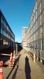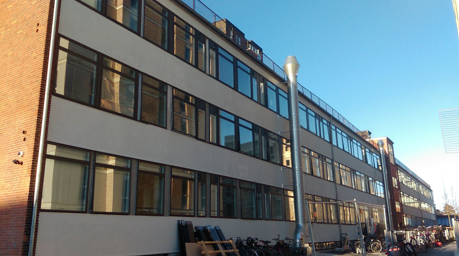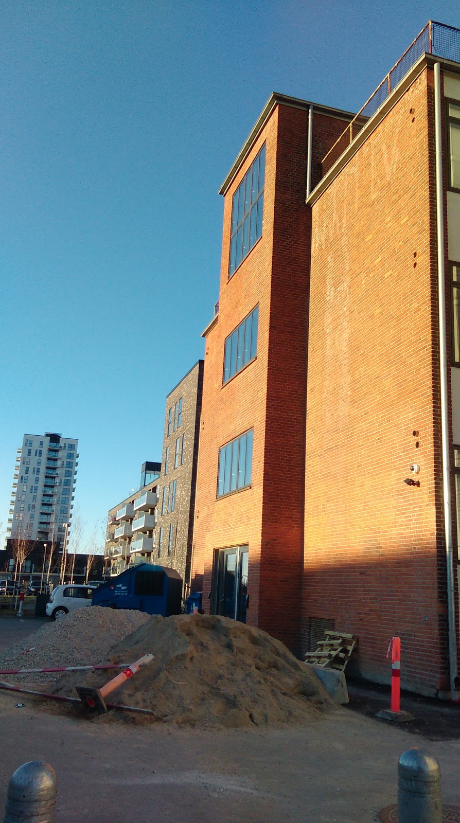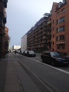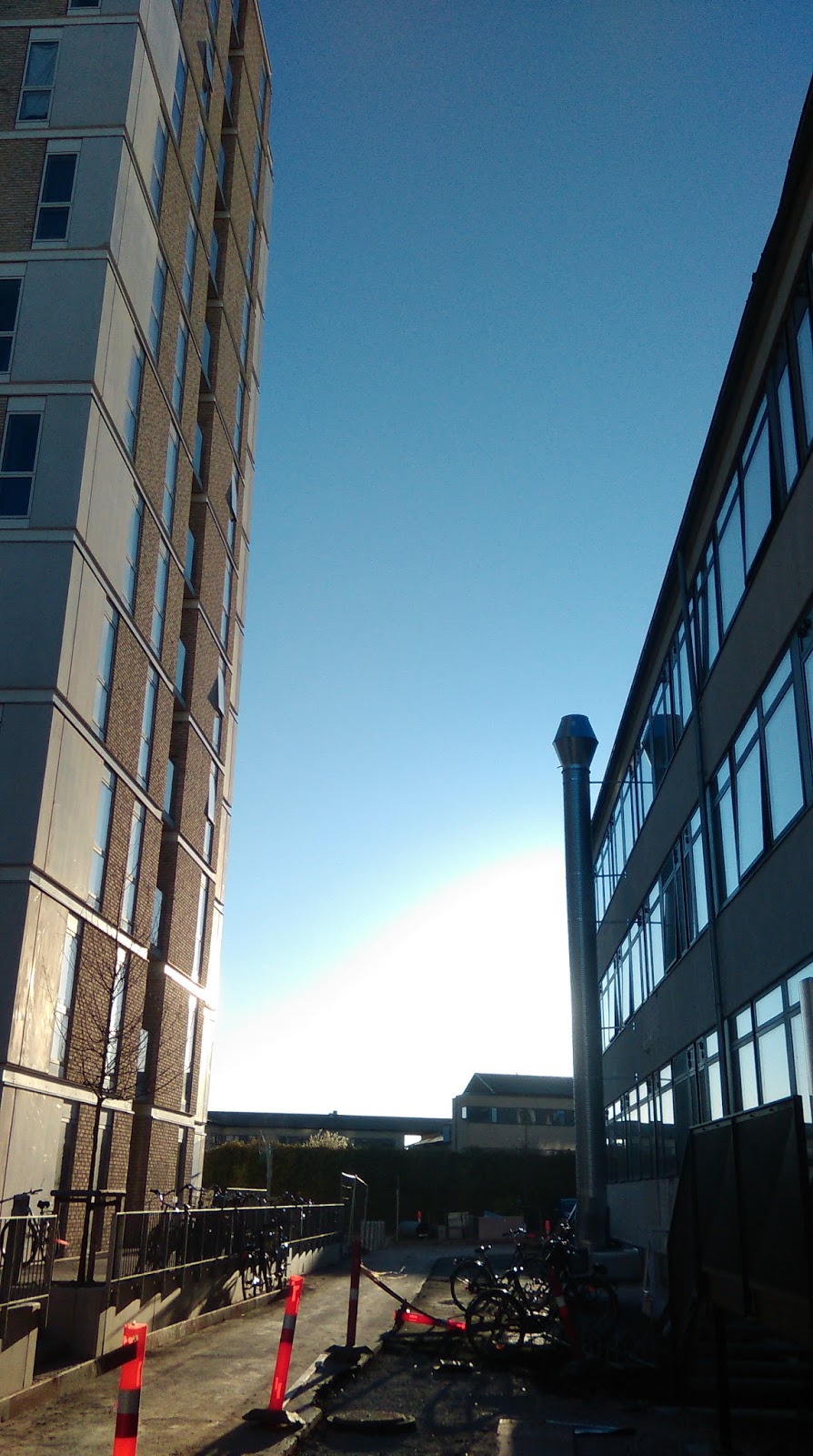 A tak – w dzisiejszym kopenhaskim słońcu – wygląda akademik, w którym mieszkam, i jego najbliższe otoczenie..